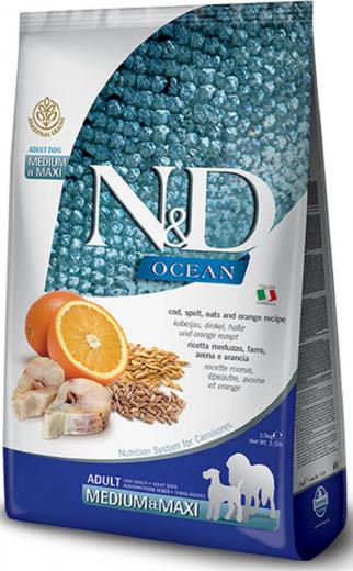 Farmina Сухой корм N&D Adult Dog Meduim & Maxi Ocean Codfish&Orange с треской, спельтой, овсом и апельсином для собак средних и крупных пород 2,5кг