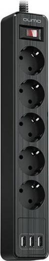 Qumo Сетевой фильтр Power Bar 5SP4U, 5 розеток, 3xUSB, 2500 Вт, 10А, 2м Черный 42090