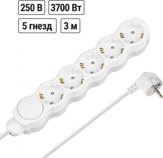 TDM Electric Удлинитель бытовой Люкс с выкл., 5 гнезд, 3 м, с/з, с з/ш, ПВС 3х1,5 мм2, 16 А, 250 В, 3700 Вт У1-63223, цена за 1 шт