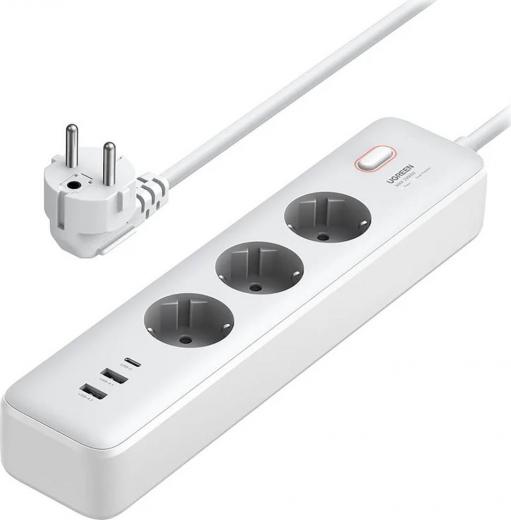 UGreen Сетевой фильтр CD286, 3-розетки, 2xUSB, 1xUSB Type-C, 2 м, белый